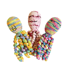 The Octopals are made using very specific materials, 100% 4ply cotton that can be washed at a high temp and made to a very specific size and standard for safety reasons.